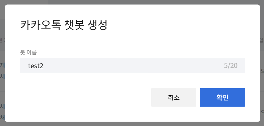 웹 서버를 동작시켰다면, 챗봇 관리자 센터에서 챗봇을 생성한다.