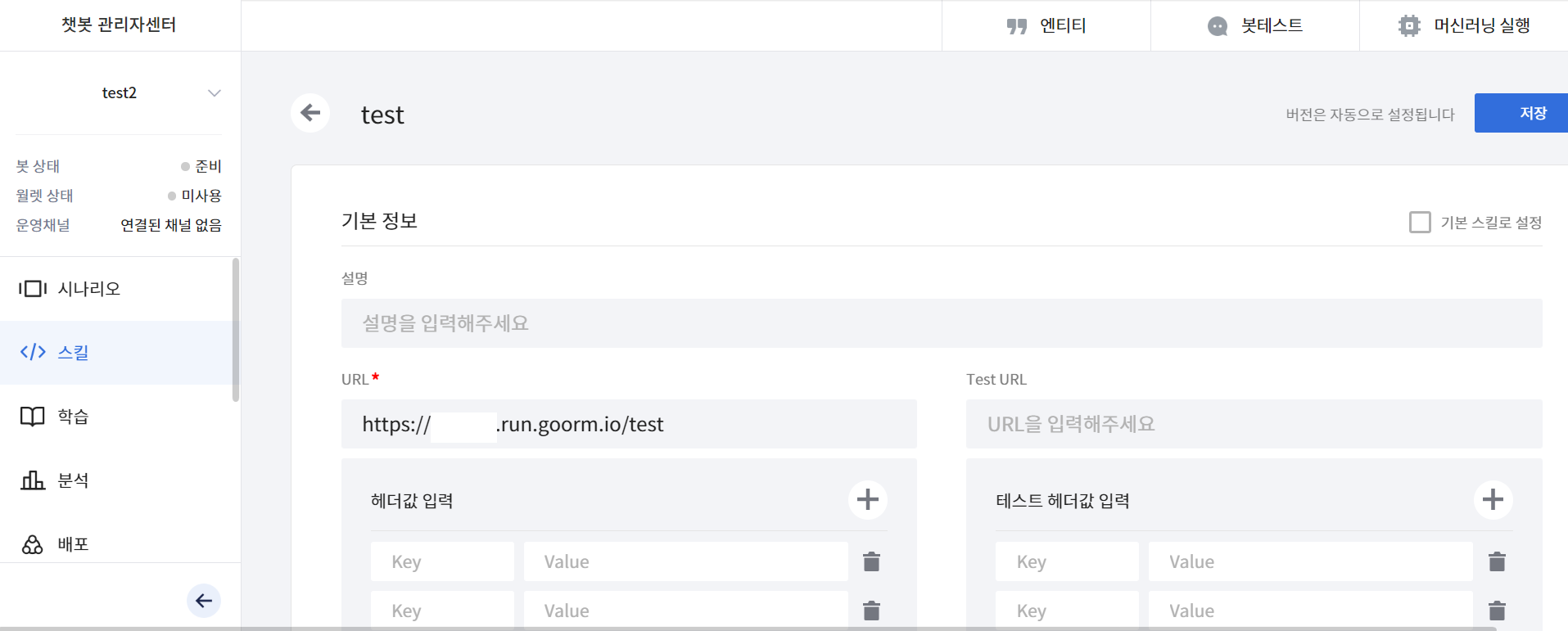 스킬을 등록할 때 아까 등록한 도메인 주소를 입력하면 된다.